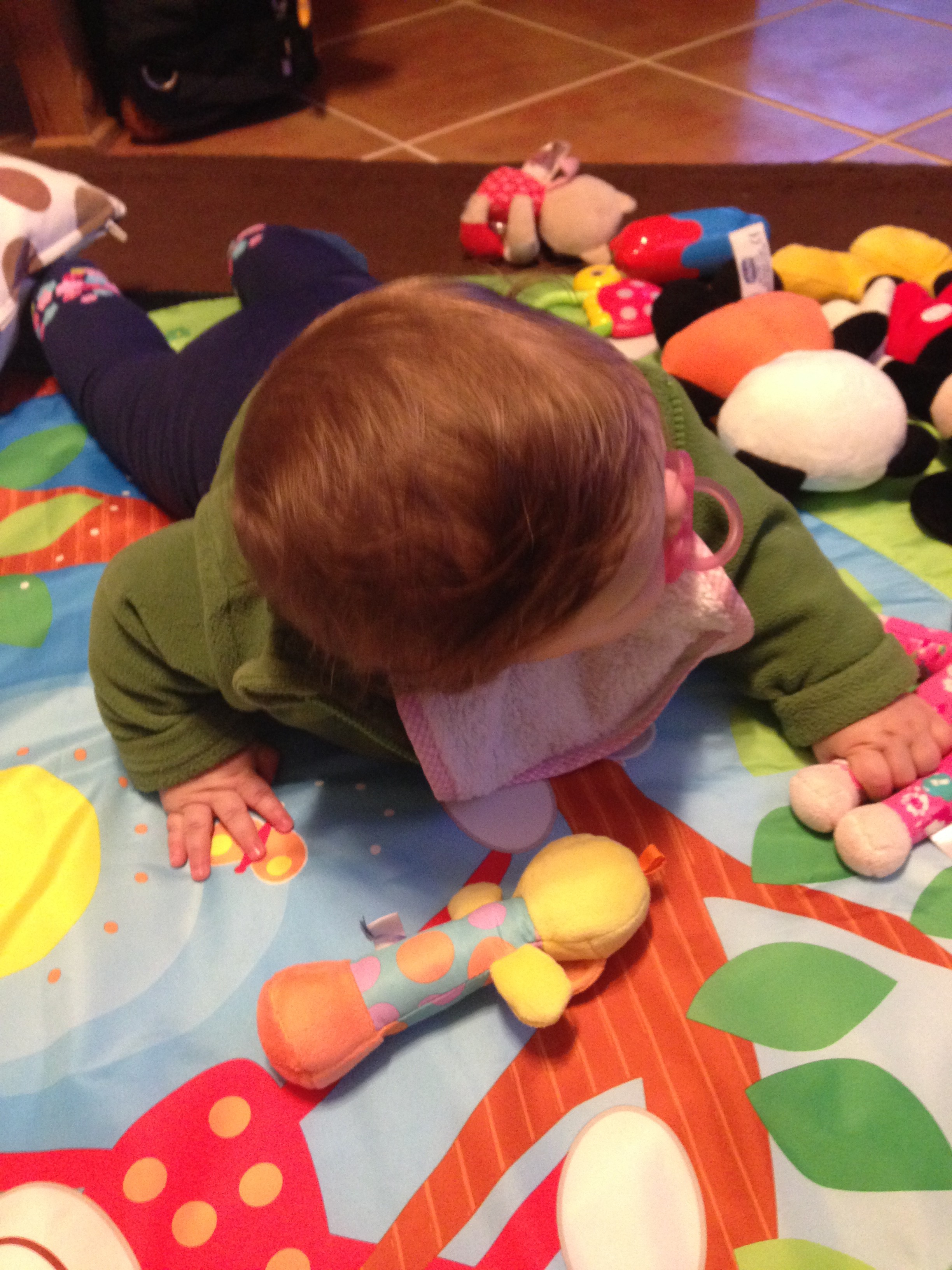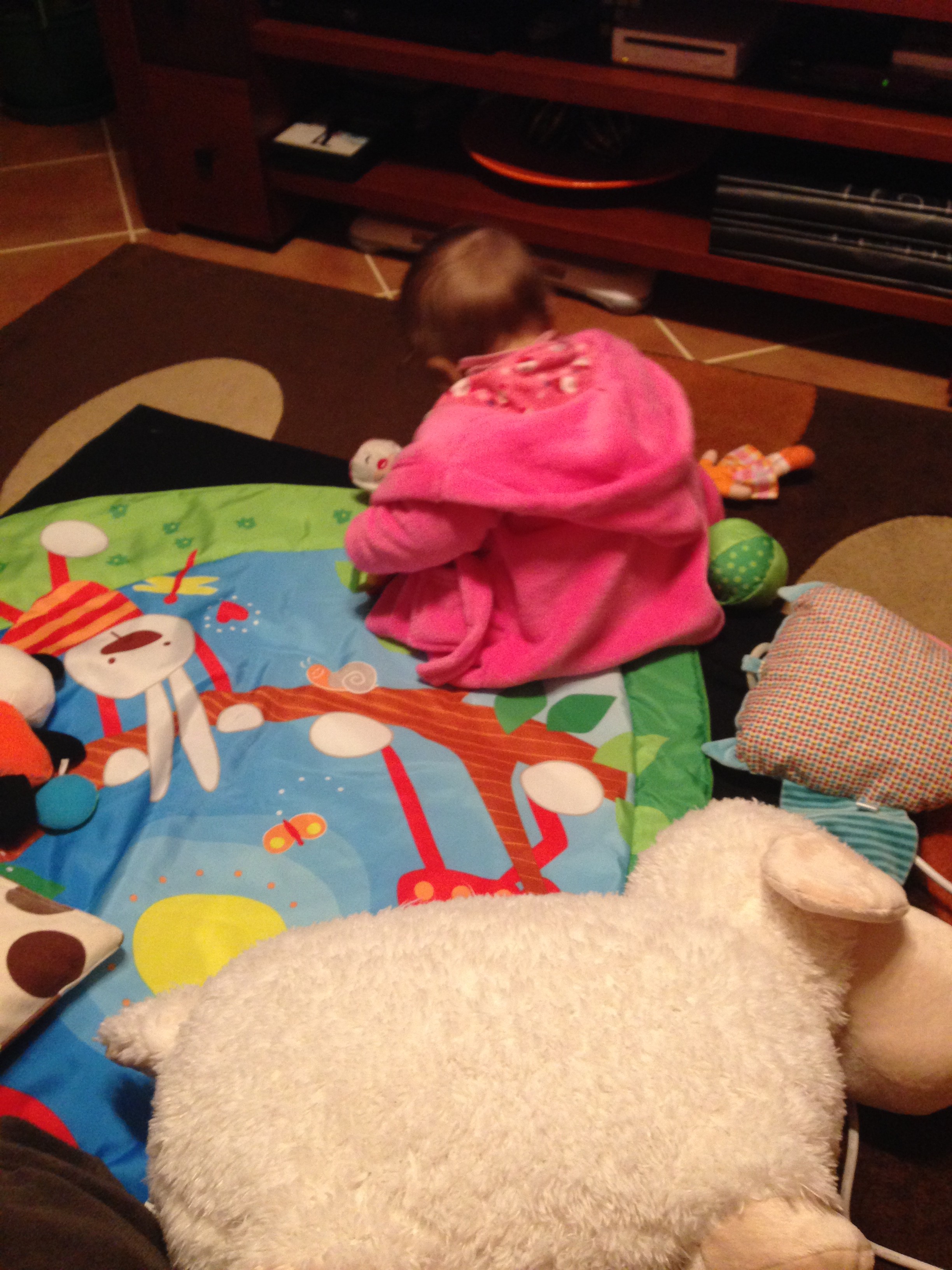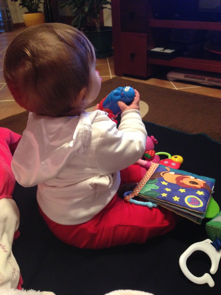 28 Janeiro: Já consegues deslizar quando o terreno é favorável. A mamã sentou-te no sol do tapete (foto abaixo) e daí a pouco já estavas fora do tapete.