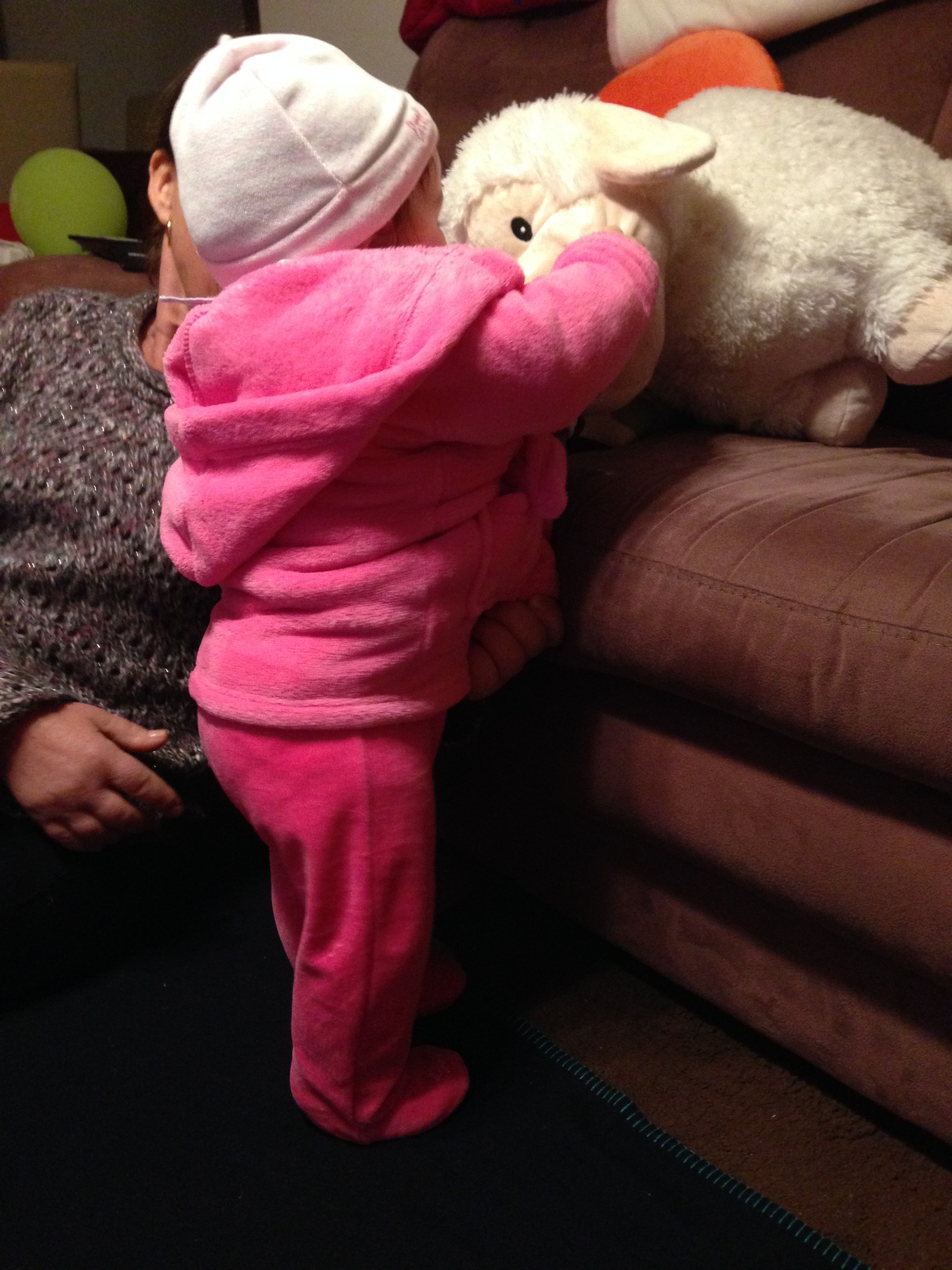 9 de Abril – esta semana começaste na sala “dos grandes”, na creche. Uma coisa que temos notado é que tentas falar mais. Deves sentir-te motivada ao pé dos outros. É giro, mas por enquanto só saem palavras encriptadas em Leonorês! Dizes muito “ai ai ai” e “ta ta ta”.