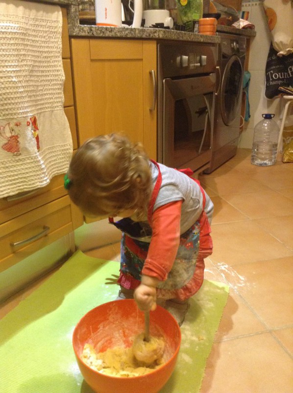 18 de Dezembro – Estiveste a fazer massa para bolachas de manteiga com a mamã para oferecermos no Natal! Foi bonito de se ver 😉 Sujaram a cozinha toda com farinha e estreaste o teu avental! Estavas muito contente.