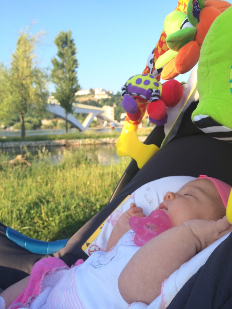 No dia 14/06 fomos a uma festa de anos dupla do Cláudio e da Sara de Cantanhede. Nem o cheiro do porco no espeto te impediu de dormir à bruta 🙂 depois viemos-te trazer a casa e a avó Lena e o avô Rui tomaram conta de ti e os papás foram mais um bocadinho à festa.