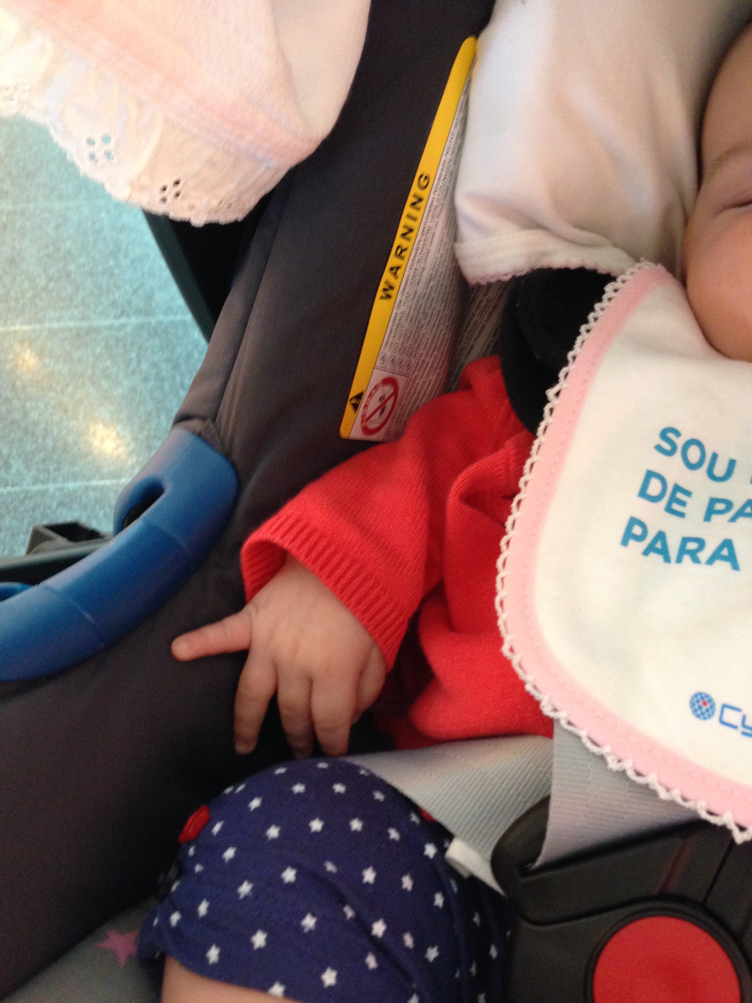 A 11 de Julho reparámos num tique. Sempre que estás deitada, procuras encostar a mão direita a algo que tenhas por perto e deixas o dedo mindinho a fazer força, como se fosse só ele a segurar a mão! Giro! 🙂