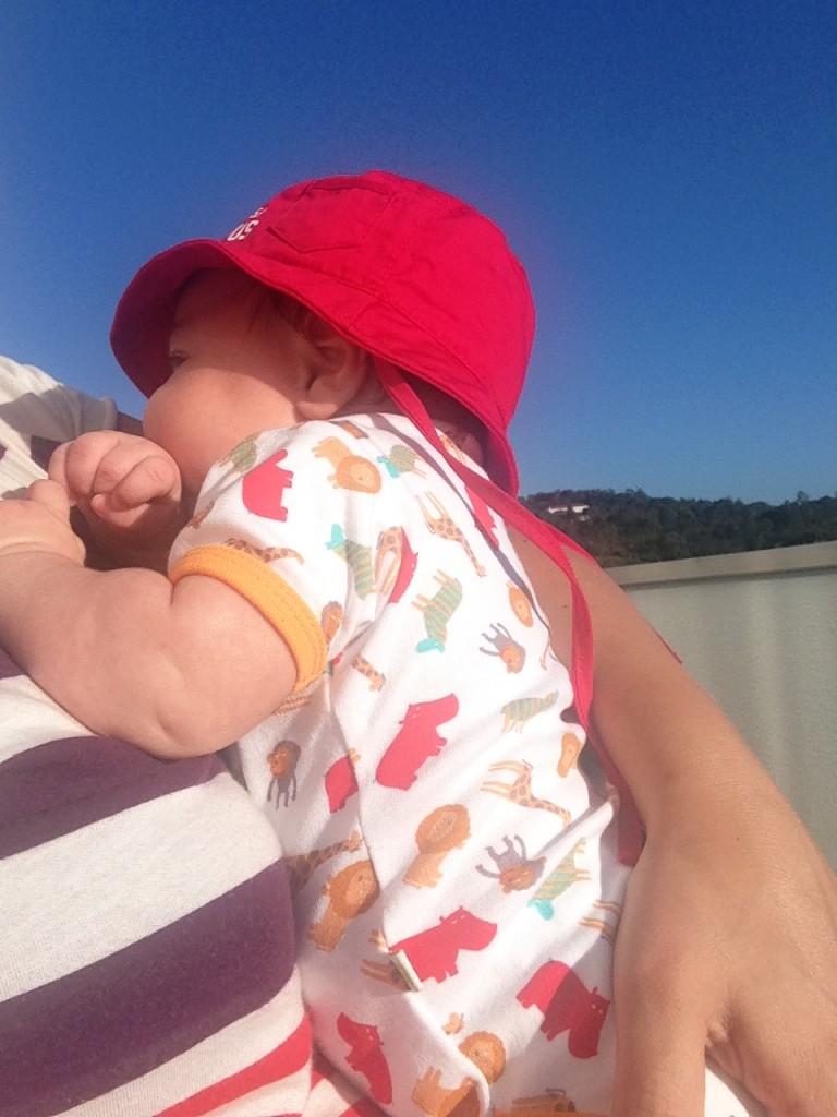 O dia 7/07 foi um dia muito interessante. Vieste de um fim‑de‑semana na Praia da Tocha em que foi mimo durante 3 dias (sexta foi feriado em Coimbra). Andaste impossível todo o dia, muito birrenta! A meio da tarde foste ao peso ao centro de saúde e chamaram-te gorda! 🙂 5.6Kg. Percentil 90 no peso…. badochita 🙂 à noite foste ao pediatra e gritaste 1h :D. Chegaste a casa e ferraste no sono. Dormiste das 23h30 até às 07 da manhã do dia a seguir! Foi a primeira vez que dormiste a noite inteira. Gostaste tanto que daí para a frente passaste a dormir a noite inteira, com algumas recaídas mas nada de grave.